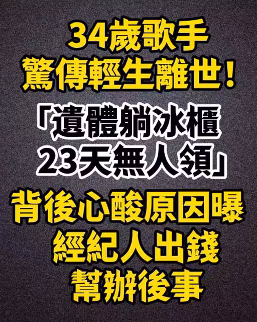 34歲歌手驚傳輕生離世!「遺體躺冰櫃23天無人領」背後心酸原因曝 經紀人出錢幫辦後事 -