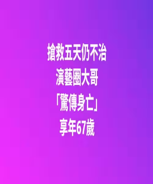 快訊/搶救五天仍不治!67歲演藝圈大哥「驚傳身亡」 死因曝光!