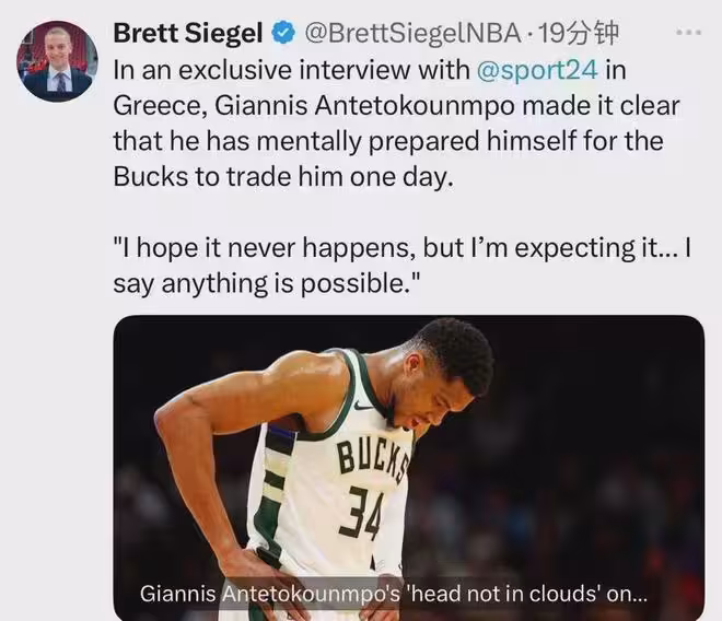 希臘籃協主席里奧利奧斯前幾天說道:「只要不遭遇嚴重傷病,字母哥就會一直為國家隊效力。」