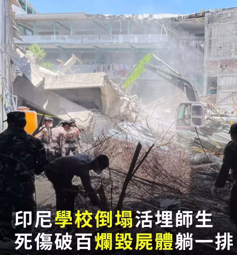 印尼學校倒塌百名師生遭埋 最新死傷數字曝光