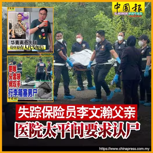 無獨有偶,一名從事保險的31歲華青李文瀚,自周二(7日)中午起離奇失聯至今。其父親晚上約8時抵達詩布朗再也醫院太平間,欲了解案件進展,但因遺體解剖工作仍在進行,暫未能進入。