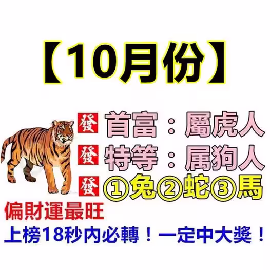 進入10月份屬虎的人的身上總是會被好運所圍繞,同時屬虎的人總是會給人帶來正能量,他們總是積極向上,充滿自信,這樣的他們總是會帶動周邊的朋友,讓他們也是充滿活力的。 好運總是會眷顧不斷努力的人,所以在10月份,好運會不斷的靠近在屬虎的人的身上。