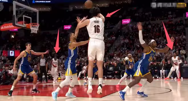 此時所有人都覺得這球小楊要助攻他了,可是楊瀚森上演不看人傳球,來了個「no look pass」,像魔術師一樣把球送到了籃下的西索科手裡,楊瀚森這個回合吸引了場上五個勇士球員的防守,助攻西索科上空籃打進,西索科就進了這一個球,就是楊瀚森傳的。