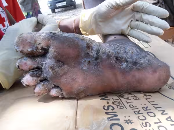 像這張照片就是最可怕的案例,這個患者必須要截肢了!