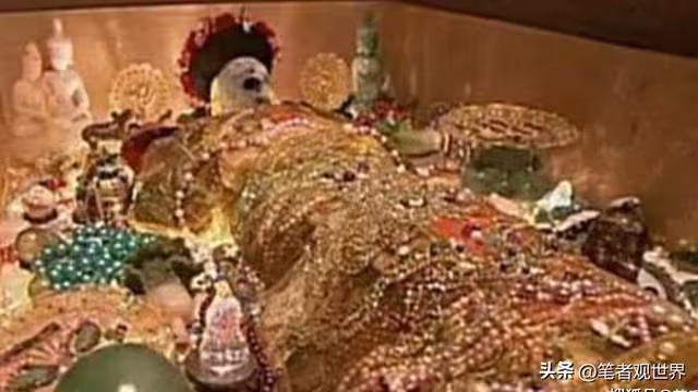慈禧棺木被劈開,屍體尚未腐爛,可嘴中那塊傳說中的夜明珠,成為匪兵眼中最大寶貝。於是,他們野蠻地撬牙、撬面,最終將屍體翻滾於污泥之中,衣物被剝光,屍體面朝下趴在地上,左手反搭後背。