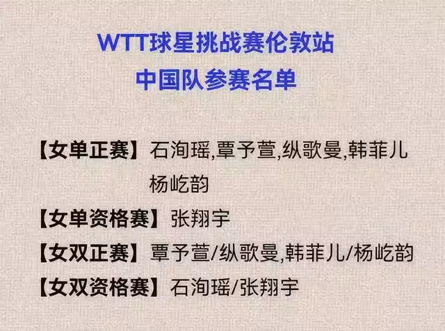 不過,基於多種綜合原因的考慮,國乒教練組還是安排了女隊6朵小花,出戰倫敦球星挑戰賽,這其中,距離主力層最近的石洵瑤當仁不讓的成為領軍人物,其餘5名選手分別是:覃予萱、縱歌曼、楊屹韻(削球)、韓菲兒(左手)、張翔宇(左手)。