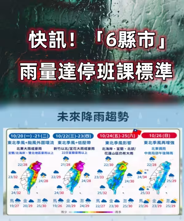 快訊!「6縣市」雨量達停班課標準