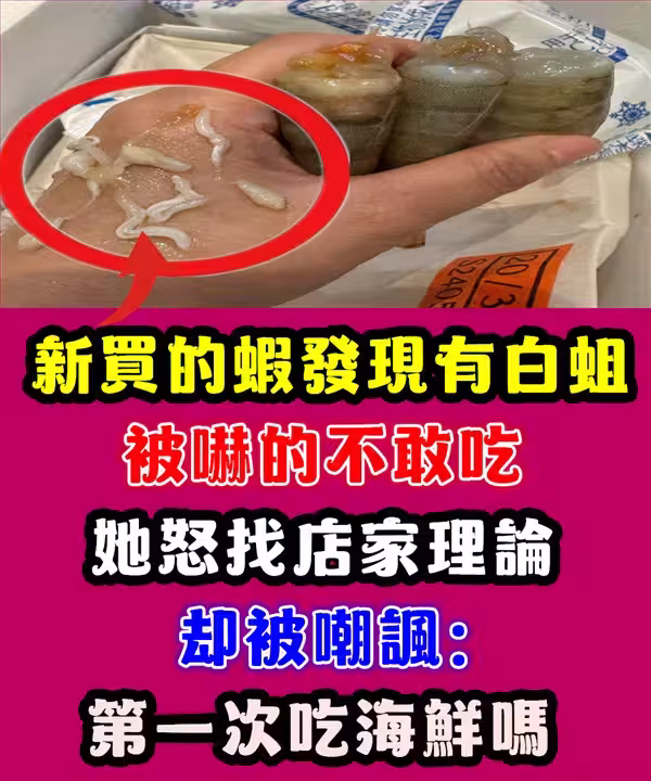 新買的蝦發現有「白蛆」,被嚇的不敢吃,她怒找店家理論卻被嘲:第一次吃海鮮嗎~