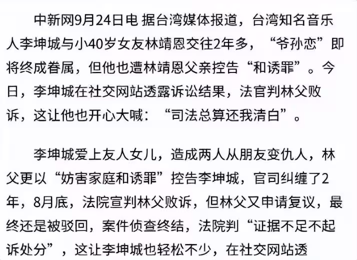 甚至早前林父還一度以「妨害家庭和誘罪」將李坤城告上法庭。