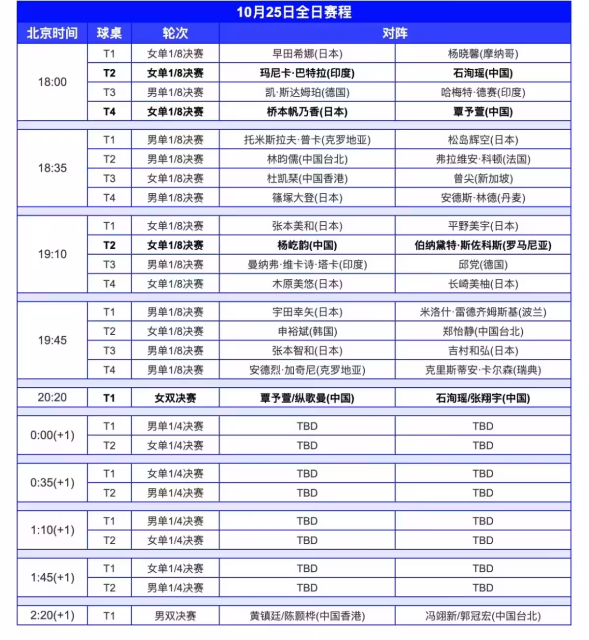 18:00 早田希娜VS楊曉馨