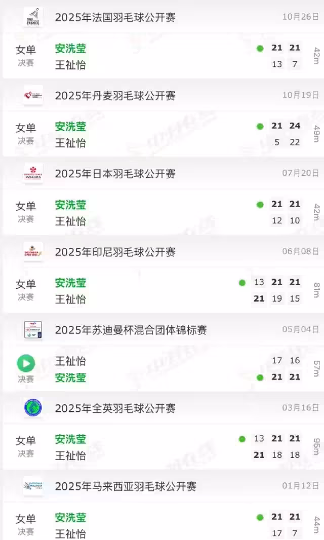 全英公開賽決賽王祉怡21-13、18-21、18-21安洗瑩;
