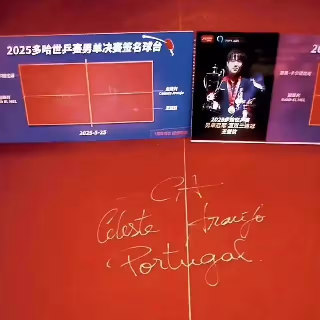 多哈世乒賽男單決賽,王楚欽4-1戰勝巴西選手雨果,首次奪得聖勃萊德杯,成為繼1993年法國選手蓋亭之後,首位獲得世錦賽男單冠軍的左手持拍選手,這場勝利對王楚欽而言意義非凡,是他職業生涯的首個「三大賽」男單冠軍,這張見證歷史的球檯隨後開始了它的「旅程」,根據報道,球檯是由北京隊的張雷指導專門安排,找多哈那邊的人,直接從多哈空運到北京的,閆安在直播中展示了球檯的照片,上面保留著王楚欽、雨果以及裁判的簽名,還有比賽留下的球印痕跡