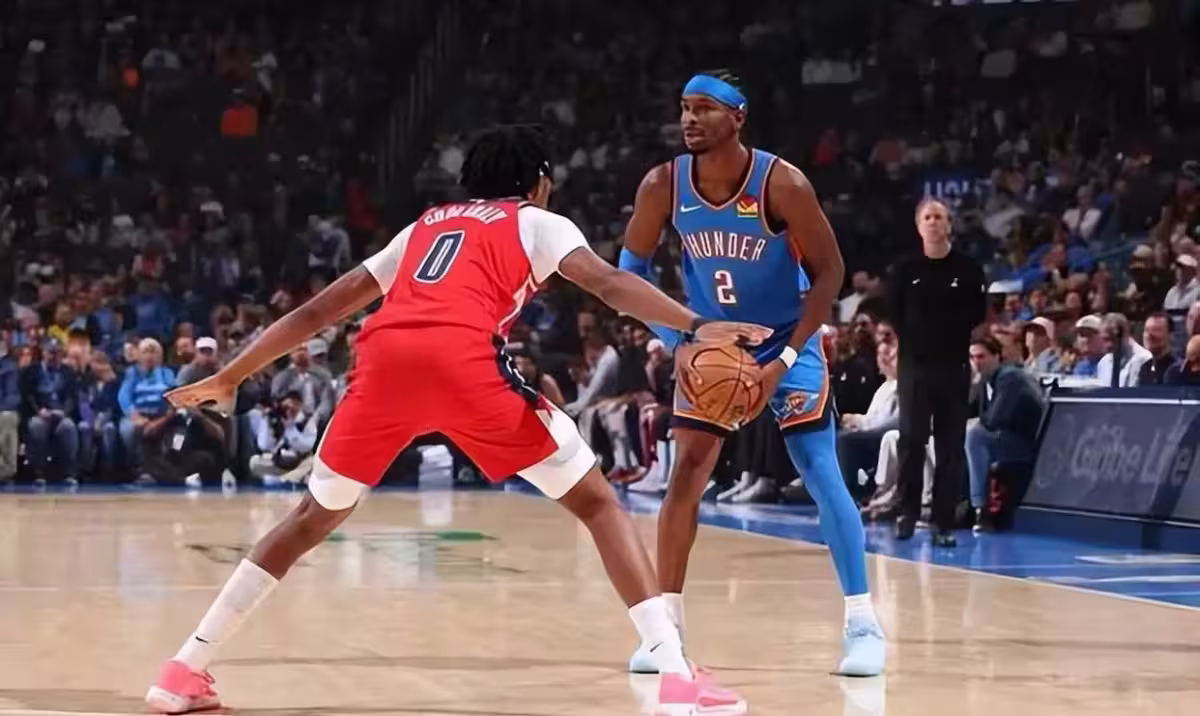 首節比賽前半段,奇才還能咬住比分,很快,雷霆就占據主動權,亞歷山大過人如閃電,飛身上籃輕鬆得手,以賽亞喬超遠三分一擊命中,雷霆早早取得10分左右領先優勢。第一節比賽結束,雷霆28-20領先奇才8分。次節比賽開始,基斯伯特的干拔三分球正入網心,幫助奇才隊先下一城,米切爾溜底線反身上籃予以還擊,惠特莫爾的超遠三分出手空心入網,卡林頓藉助擋拆衝擊籃筐挑落兩分,多爾特禁區踏雪無痕飛身補籃空心打進,麥科勒姆的鐵血三分球一箭穿心。雷霆牢牢保持住領先優勢,分差始終在10分左右徘徊,半場比賽戰罷,雷霆59-49領先奇才10分。