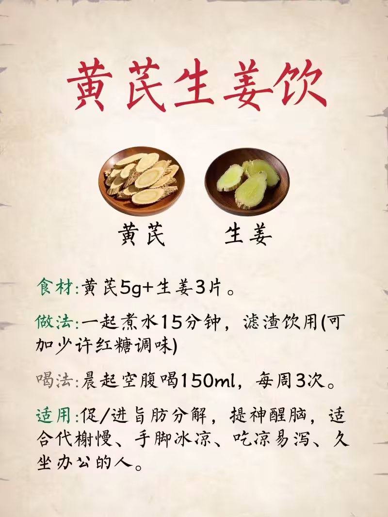 材料:黃芪片10至15克(可根據個人需求調整)。