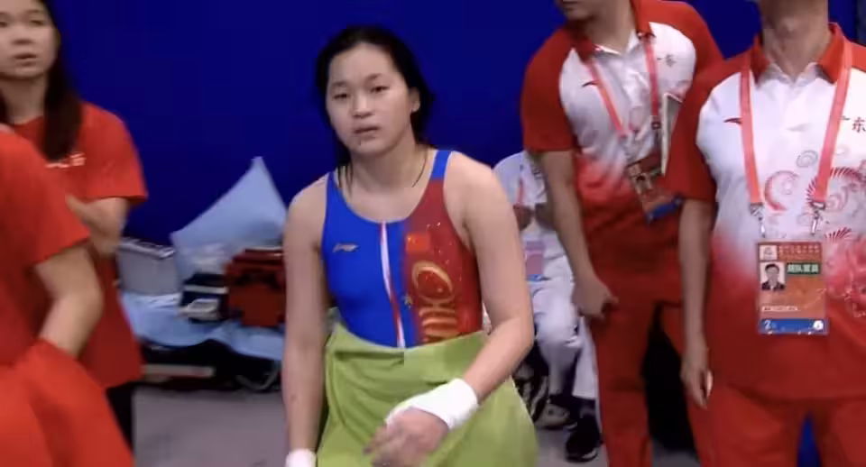 第1輪,陳芋汐/掌敏潔107B,75.6分,排名第二;全紅嬋/王偉瑩107B,76.5分,排名第一;