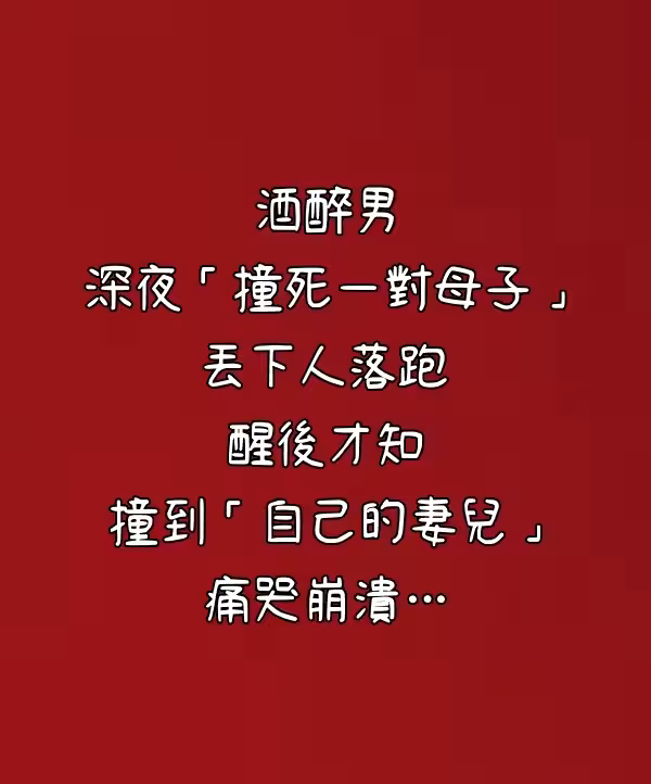 酒醉男深夜「撞死一對母子」丟下人落跑,醒後才知撞到「自己的妻兒」痛哭崩潰…