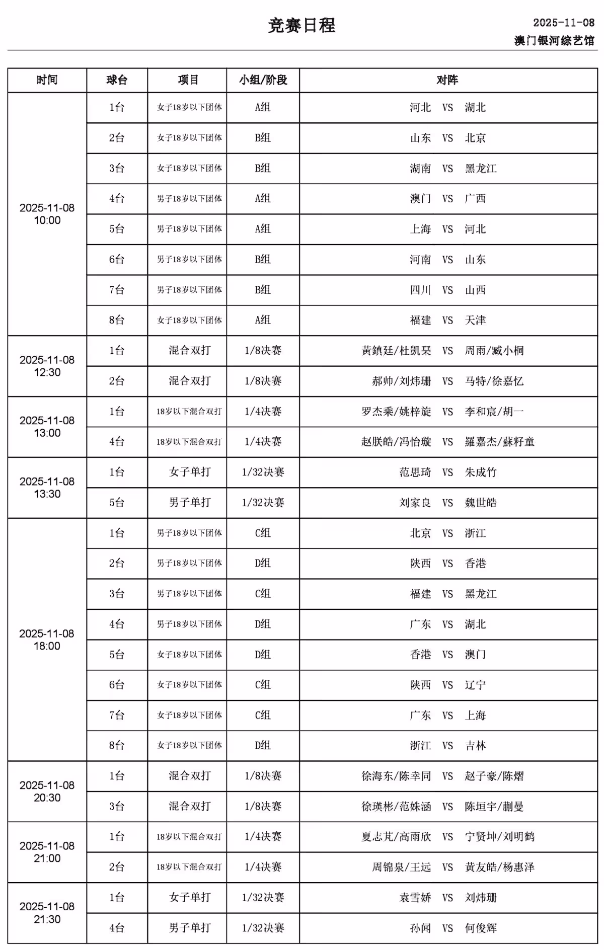全運會桌球:11月8日賽程公布!陳幸同、郝帥再登場,蒯曼迎首秀