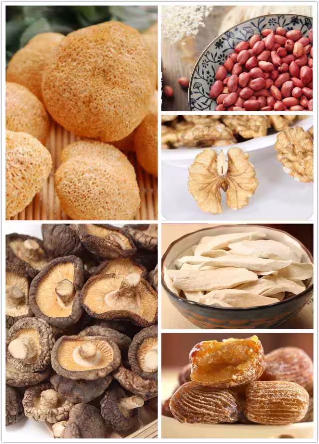 猴頭菇養胃湯 猴頭菇,2個。 冬菇,5個。 核桃,1兩。 淮山,1兩。 花生,1兩。 蜜棗,2個。 功效:養胃,補虛,益腎。