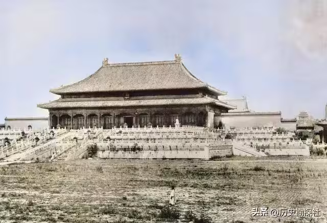 1901年,日本人拍攝的紫禁城,滿目淒涼,太監站在雜草中發獃