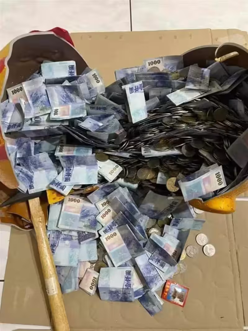 存了一整年!他年末打破豬公看到「一片藍藍紙鈔海」~算出總額後嚇爛:太扯了!