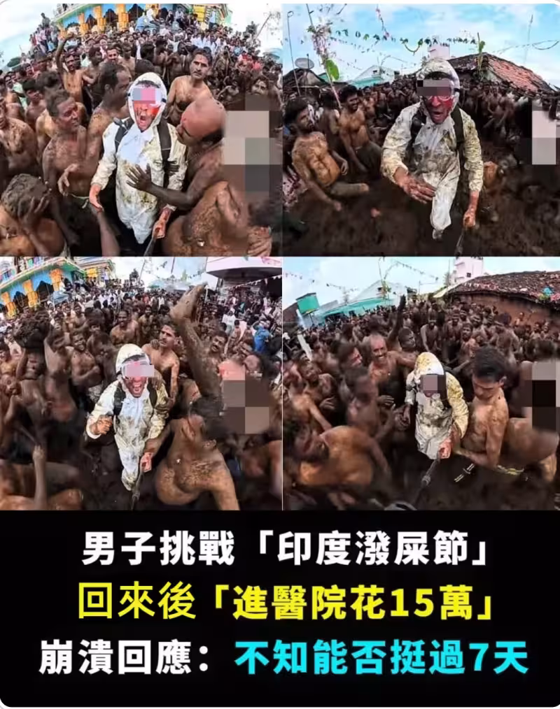 男子挑戰「印度潑屎節」回來後「進醫院花15萬」崩潰回應:不知能否挺過7天