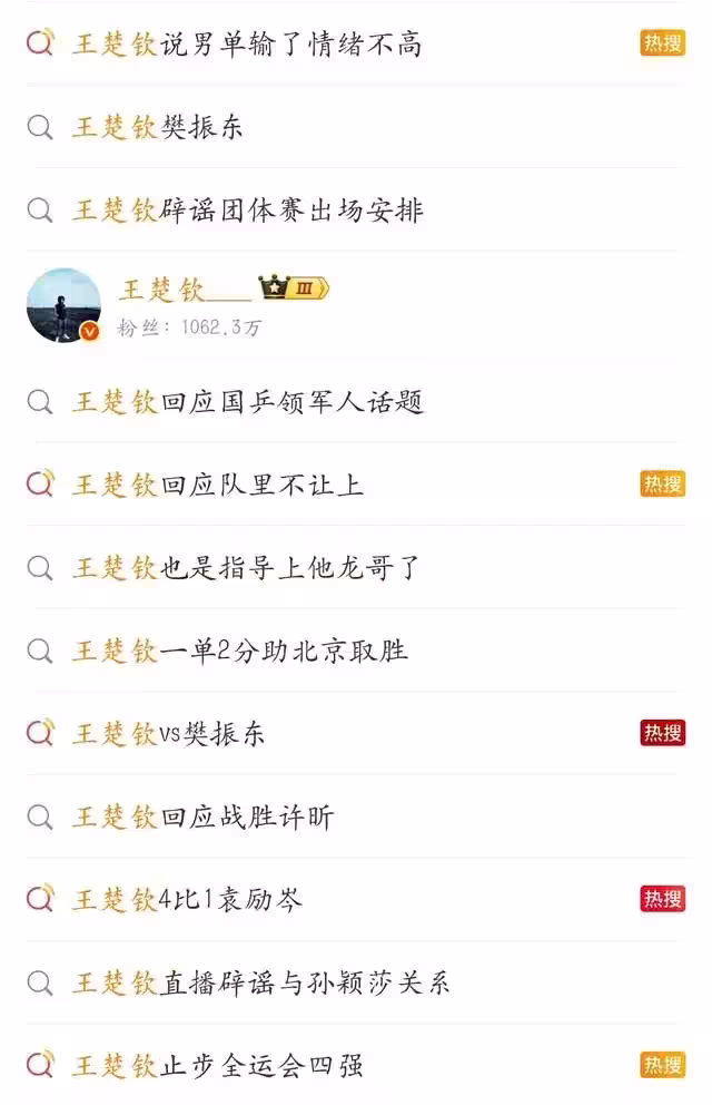 第二:場下關注度。如果說當今世界乒壇王楚欽人氣第二的話,那麼沒有人敢稱第一。無論是粉絲數量還是粉絲的狂熱度,王楚欽的流量絕對拉滿。雖然樊振東的綜合影響力也不容小覷,但是相比王楚欽,即使得了冠軍,但是論及上熱搜的頻次,遠不及王楚欽。甚至在現在的中國體壇,沒有一人能夠在熱搜榜與王楚欽相提並論。