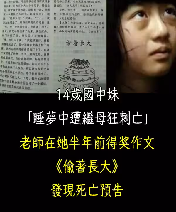 14歲國中妹「睡夢中遭繼母狂刺亡…」,老師在她的半年前得獎作文《偷著長大》發現死.亡預告!