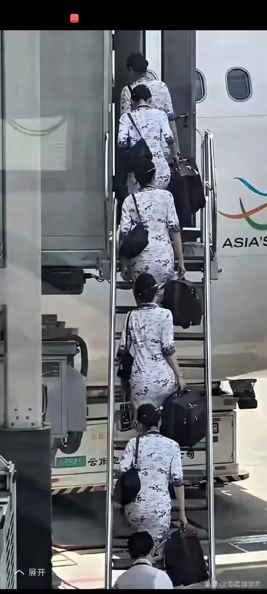 空姐們身著統一的制服,背著黑色的行李箱,轉身而從容。