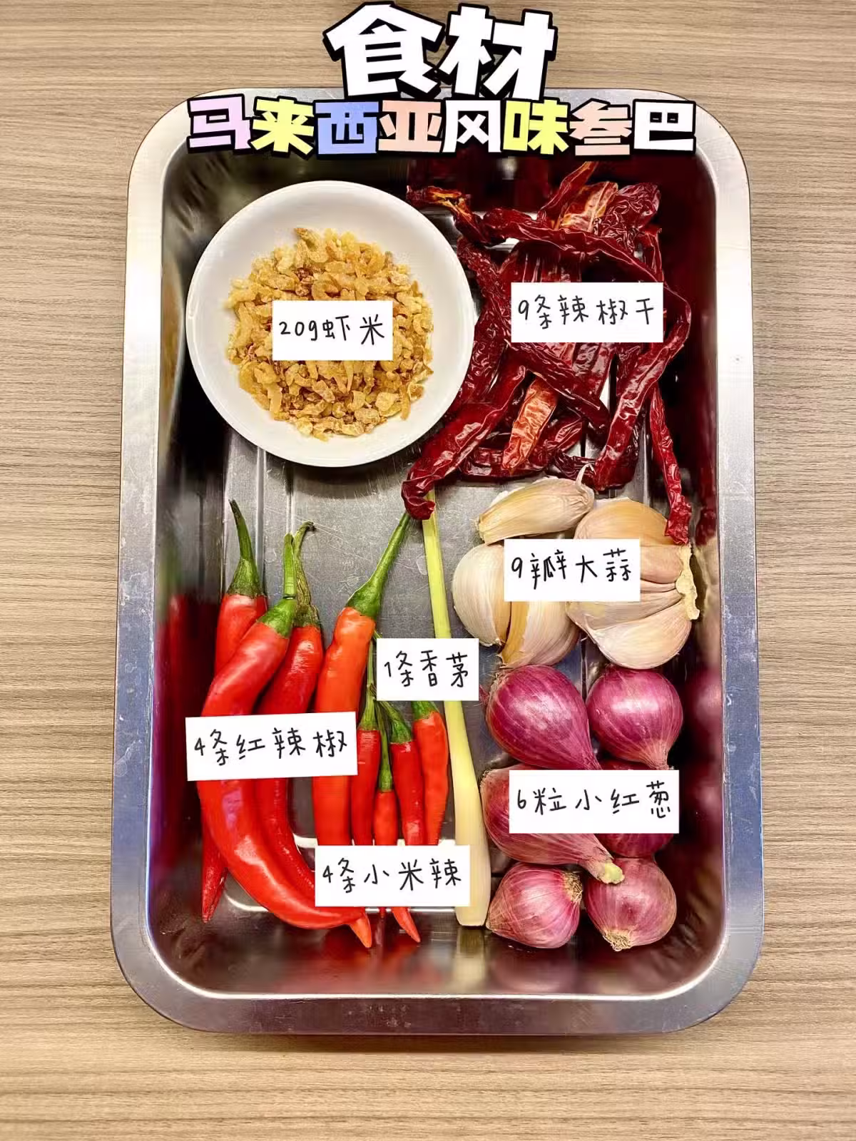 材料👉🏻蝦米20g,干辣椒9條,紅辣椒4條,小米辣4條 ,香茅1條,大蒜9瓣,小紅蔥6粒