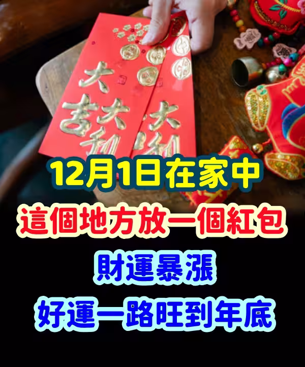 12月1日 在家中這個地方放一個紅包 能讓財運100倍暴漲 好運一路旺到年底