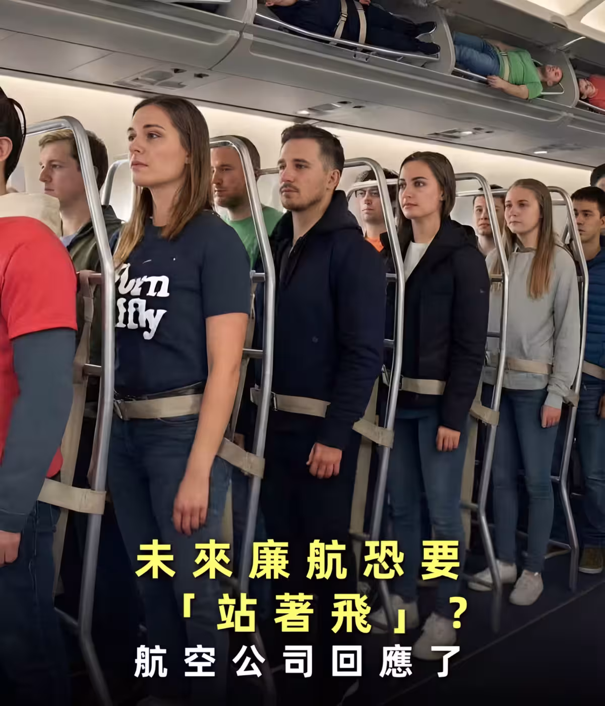 近來網絡上瘋傳了一段AI生成影片,內容是乘客一整排「站著」搭飛機,簡直像是未來版的廉航驚悚片。