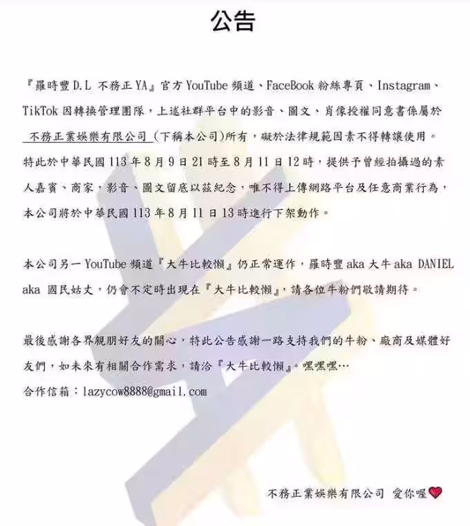 根據《TVBS》報導,雖然慘被切割,但張敏慎不會放棄心血,表示自己是頻道擁有者,接下來會繼續經營頻道,頻道名稱暫時改名成《不務正YA.侄子出租中》,希望外界給他一點時間,有後續訊息會再跟大家分享,然而才與羅時豐鬧翻,張敏慎突發動態求集氣,心碎喊話:「有什麼比生命還重要?」