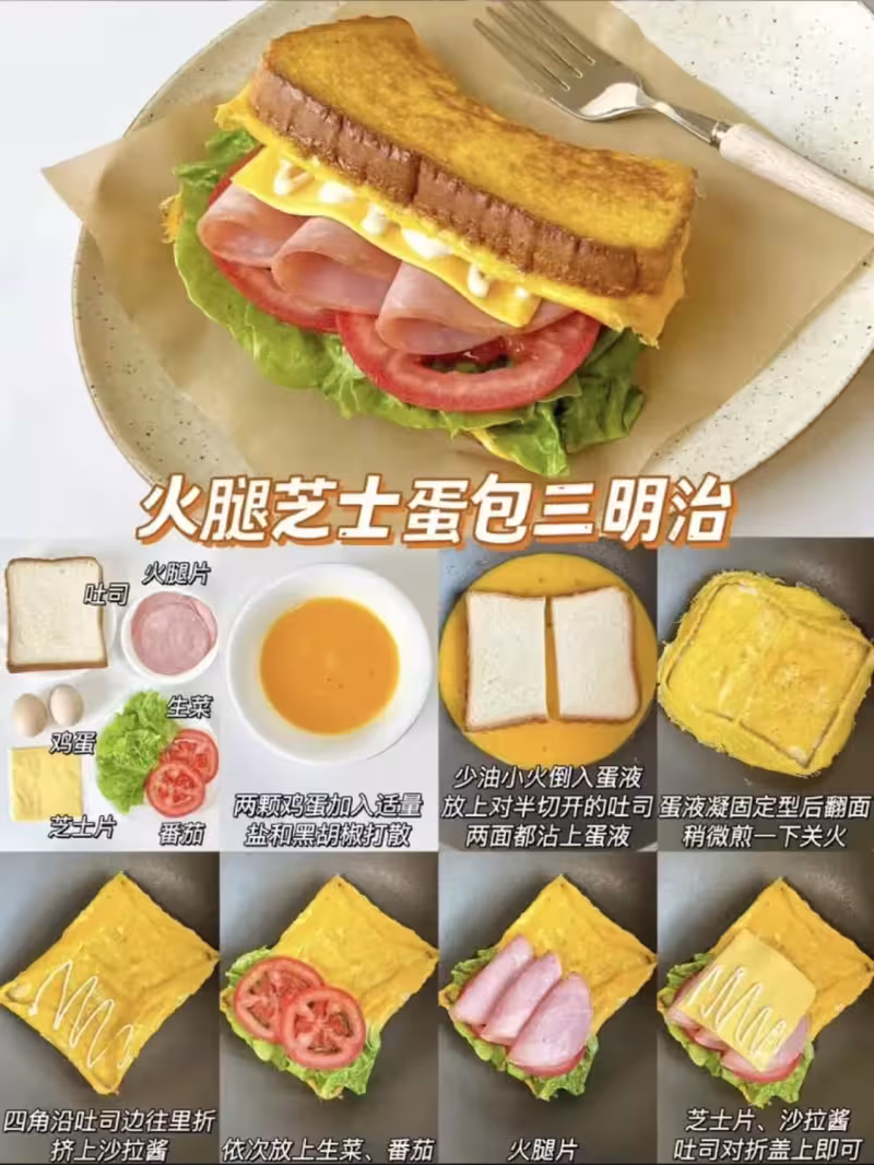 1⃣️5⃣️😍寶子們,火腿芝士蛋包三明治簡直是味蕾的「魔法盒」呀!