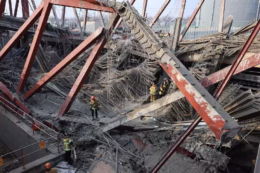 ▲▼正在興建中的「光州代表圖書館」,11日鋼鐵結構崩塌。