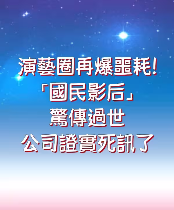 演藝圈再爆噩耗!「國民影后」驚傳過世 公司證實死訊了。