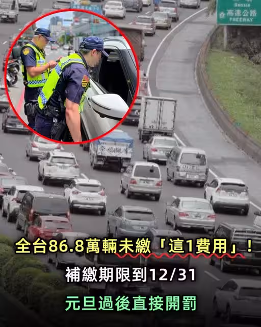 全台86.8萬輛未繳「這1費用」!補繳期限到12/31,元旦過後直接開罰