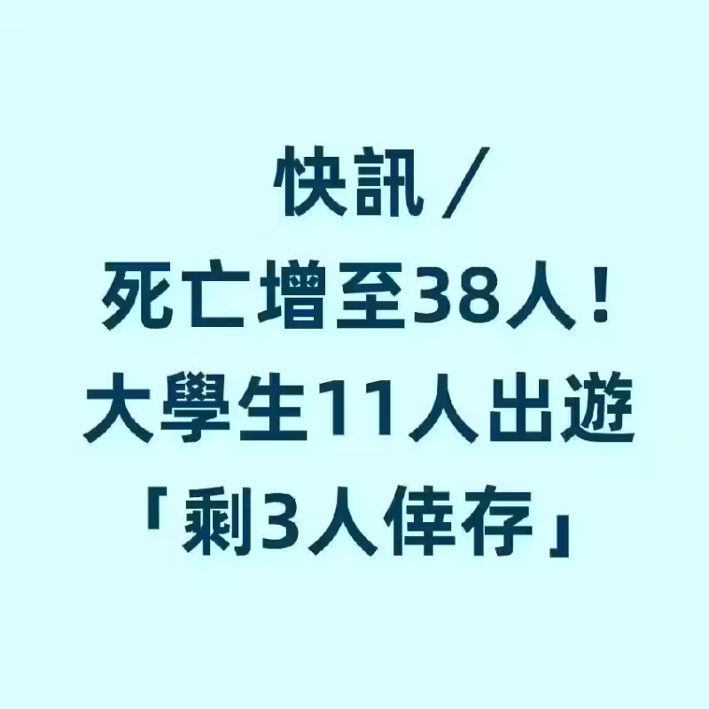 快訊/死亡增至38人!大學生11人出遊「剩3人倖存」!