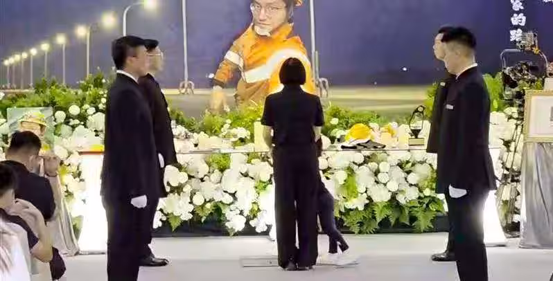 「謝謝你成為光明耀眼的騎士,你的另一半完整了我的生命,我李元瀚的妻子,今生來世永遠愛你,我乘載著無窮的愛、無盡的思念、無限的感謝、與你道別」,李妻忍悲訴說對丈夫的感謝及思念,道出最後一句再見,幼女懞懂地在腳邊打轉,最後被她一手抱起,兩人一起向丈夫、爸爸鞠躬道別。
