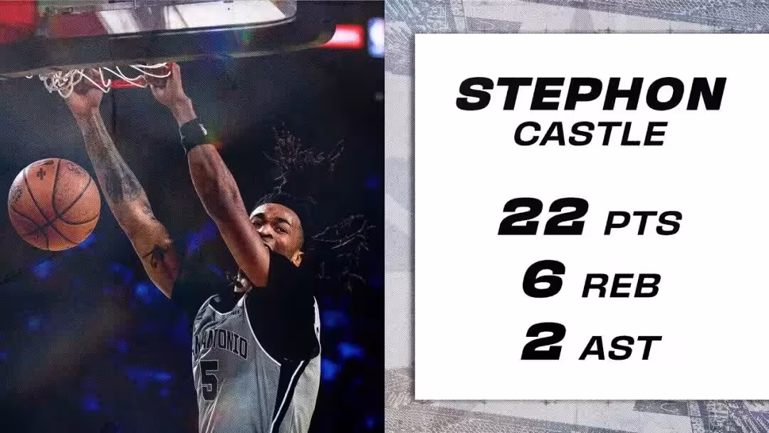 截至目前為止,卡斯爾一共為馬刺打了20場比賽,場均上場30.4分鐘,得到18.6分5.3籃板7.0助攻1.3搶斷,三項命中率50.6%/30.5%/72.3%,真實命中率60.6%。