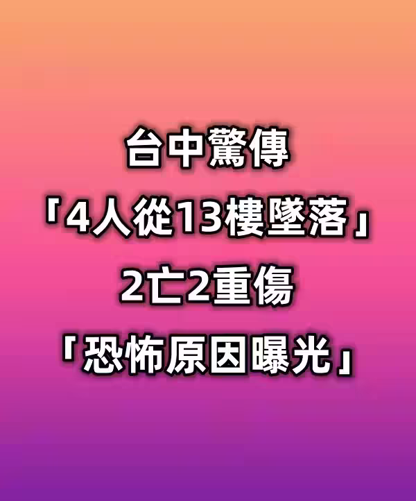 突發/台中驚傳「4人從13樓墜落」!2亡2重傷「恐怖原因曝光」