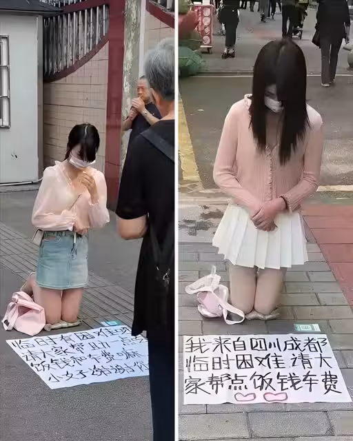 然而日前在四川卻出現了一位年輕女孩跪地乞討,由於她穿著時尚乾淨,因此也讓大家困惑為何她做出這樣的舉動…