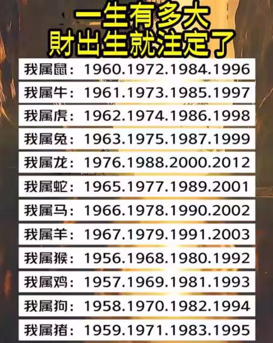 鼠:1960、1972、1984、1996