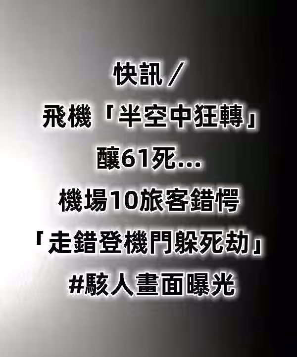 快訊/飛機「半空中狂轉」釀61死... 機場10旅客錯愕「走錯登機門躲死劫」 #駭人畫面曝光