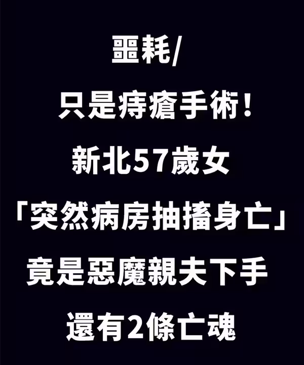 只是痔瘡手術!新北57歲女「突然病房抽搐身亡」竟是「惡魔親夫下手」還有兩條亡魂