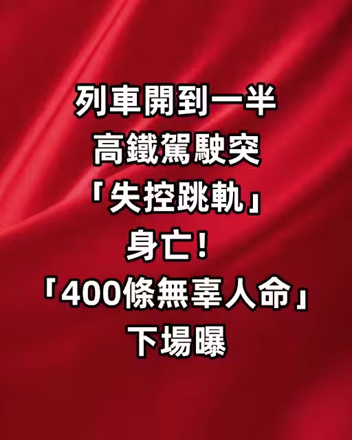 突發/列車開到一半... 高鐵駕駛突「失控跳軌」身亡「400條無辜人命」下場曝
