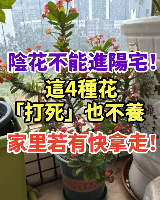 花卉是家居環境中一道美麗的風景線,很多人喜歡通過養花來增添生氣,讓居住的空間更為溫馨。但需要注意的是,陰花不能進陽宅!尤其4種花「打死」也不養,你家裡要有的話,就趕快挪走!