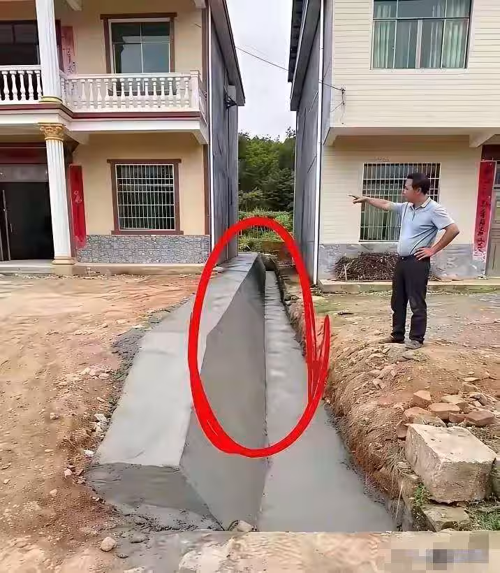 老王站在自家門口,臉色不太好,「你看看,水溝都快被你擠沒了!」