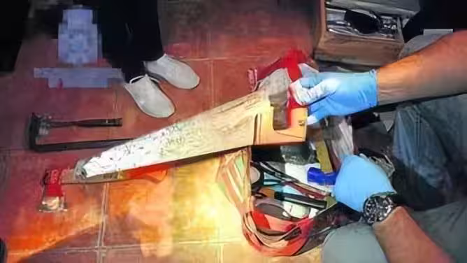 而這些物品則都在別墅的其他地方被找到,光是刀具,就在別墅中找到了200多把,分別位於別墅廚房、客廳,埃克托爾夫婦的臥室等地,大多數是尺寸不一的水果刀和廚房刀,少數為菜刀、匕首,其中單單二層起居室的一個旅行包里就裝了上百把。