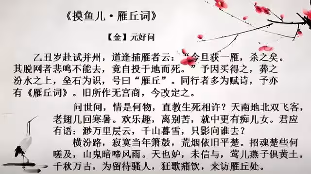 他將「雁」與「人」融為一體,讓這首詞不僅僅是對一對禽鳥的祭文,更是對千古人情的發問。