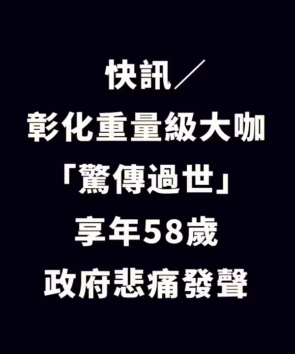 快訊/彰化重量級大咖「驚傳過世」享年58歲,政府悲痛發聲